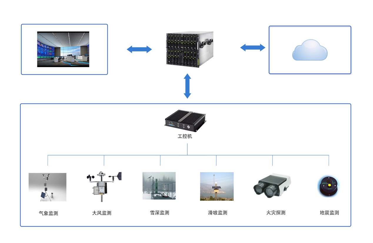 防災(zāi)減災(zāi)綜合監(jiān)測(cè)預(yù)警系統(tǒng)現(xiàn)場(chǎng)級(jí)處理單元由核心工控機(jī)和外圍傳感器設(shè)備組成,部署在水電站、核電站、機(jī)場(chǎng)、海港等關(guān)鍵場(chǎng)所,主要用于防災(zāi)數(shù)據(jù)監(jiān)測(cè)、數(shù)據(jù)分析和聯(lián)動(dòng)控制。現(xiàn)場(chǎng)級(jí)處理單元通過專用網(wǎng)絡(luò)與監(jiān)控中心進(jìn)行通信,實(shí)現(xiàn)自然災(zāi)害狀況實(shí)時(shí)監(jiān)測(cè),進(jìn)行災(zāi)害數(shù)據(jù)的收集、分析及處理,生成、傳輸并發(fā)布災(zāi)害警報(bào)信息和緊急處置信息,觸發(fā)相關(guān)防災(zāi)減災(zāi)系統(tǒng)聯(lián)動(dòng),進(jìn)而減小災(zāi)害對(duì)社會(huì)生產(chǎn)和人民生活造成的損失。