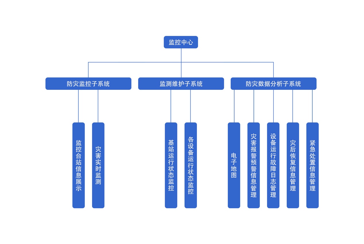 監(jiān)控中心能夠?qū)Ψ罏?zāi)監(jiān)測區(qū)域內(nèi)進(jìn)行全方位的災(zāi)害監(jiān)測及預(yù)警,對(duì)各個(gè)監(jiān)測設(shè)備進(jìn)行全方位、多層次的監(jiān)控和管理。對(duì)監(jiān)控設(shè)備運(yùn)行狀態(tài)實(shí)時(shí)監(jiān)測,同時(shí)對(duì)接收到的報(bào)警、預(yù)警信息進(jìn)行展示,實(shí)現(xiàn)電子地圖自動(dòng)定位、多點(diǎn)災(zāi)害預(yù)測定位,自動(dòng)化災(zāi)害緊急處置、設(shè)備故障日志查詢、災(zāi)害報(bào)警預(yù)警數(shù)據(jù)查詢導(dǎo)出、實(shí)時(shí)監(jiān)測等功能。